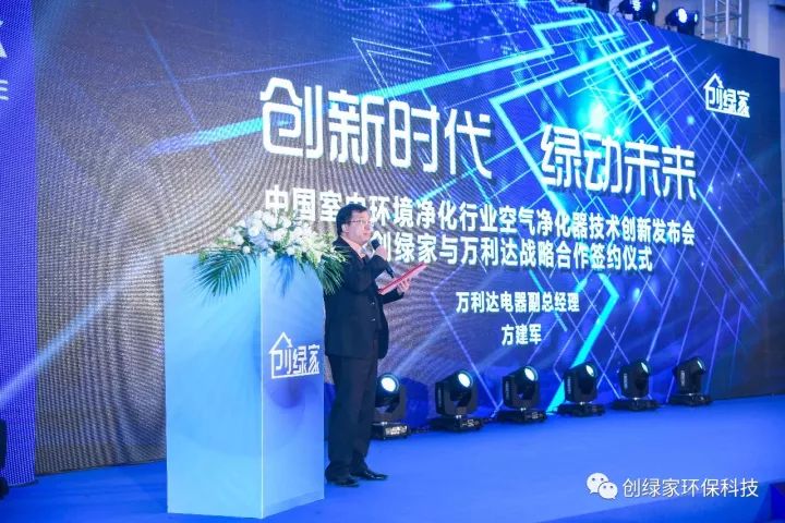 萬利達電器副總經理方建軍在會上表示,本次萬利達與創綠家的合作,是空氣凈化器領域合作模式的創新,更是兩大核心技術的強強聯合!