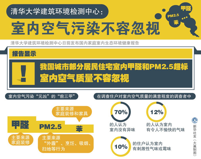 清華大學(xué)建筑環(huán)境檢測中心日前發(fā)布國內(nèi)家庭室內(nèi)生態(tài)環(huán)境健康報(bào)告。這份名為《中國家庭生態(tài)環(huán)境白皮書》的報(bào)告由中國環(huán)境科學(xué)學(xué)會室內(nèi)環(huán)境與健康分會、清華大學(xué)建筑環(huán)境檢測中心以及中脈科技聯(lián)合發(fā)起。活動(dòng)歷時(shí)5個(gè)月,抽檢了北京、上海、廣州、南京、西安、濟(jì)南、杭州、重慶、成都九大城市近千戶居民家庭,對室內(nèi)PM2.5、甲醛、苯等多項(xiàng)生態(tài)指標(biāo)進(jìn)行了系統(tǒng)性檢測,報(bào)告顯示,我國城市部分居民住宅室內(nèi)甲醛和PM2.5超標(biāo),室內(nèi)空氣質(zhì)量不容忽視。